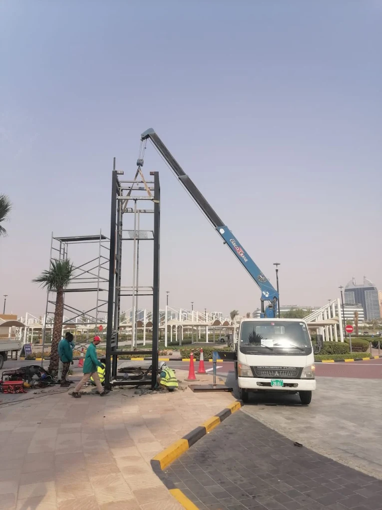 Crane support for installing advertising signboards, street lighting poles, and high structures.